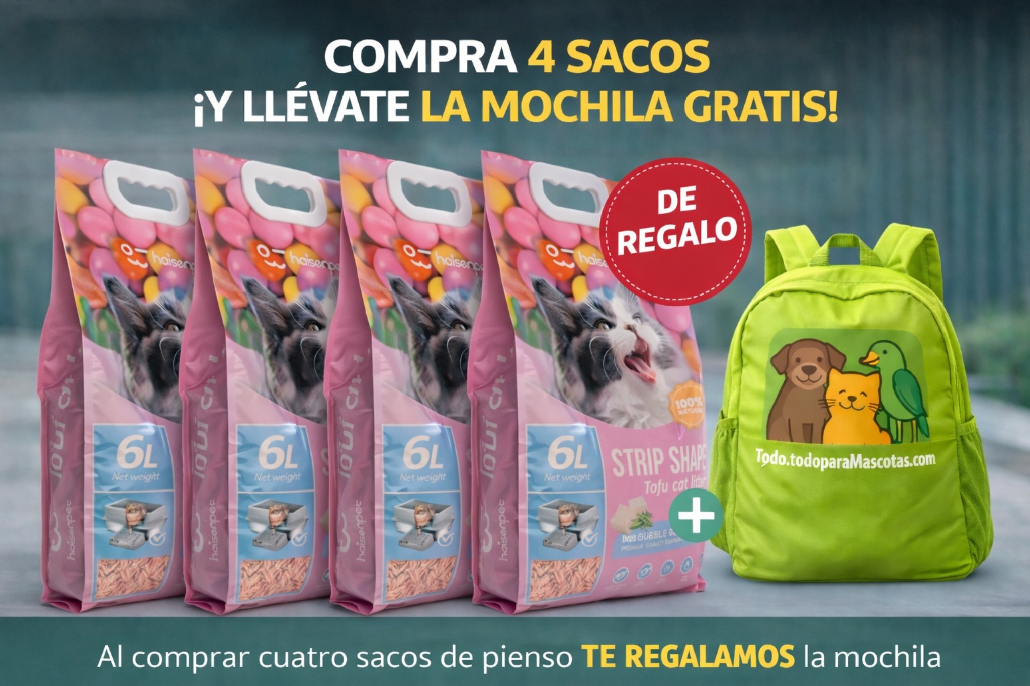 4 UNIDADES DE ARENA TOFU PREMIUM AROMA A CHICLE (6 LITROS,2,6KG) – BIODEGRADABLE+MOCHILA 2026 DE REGALO