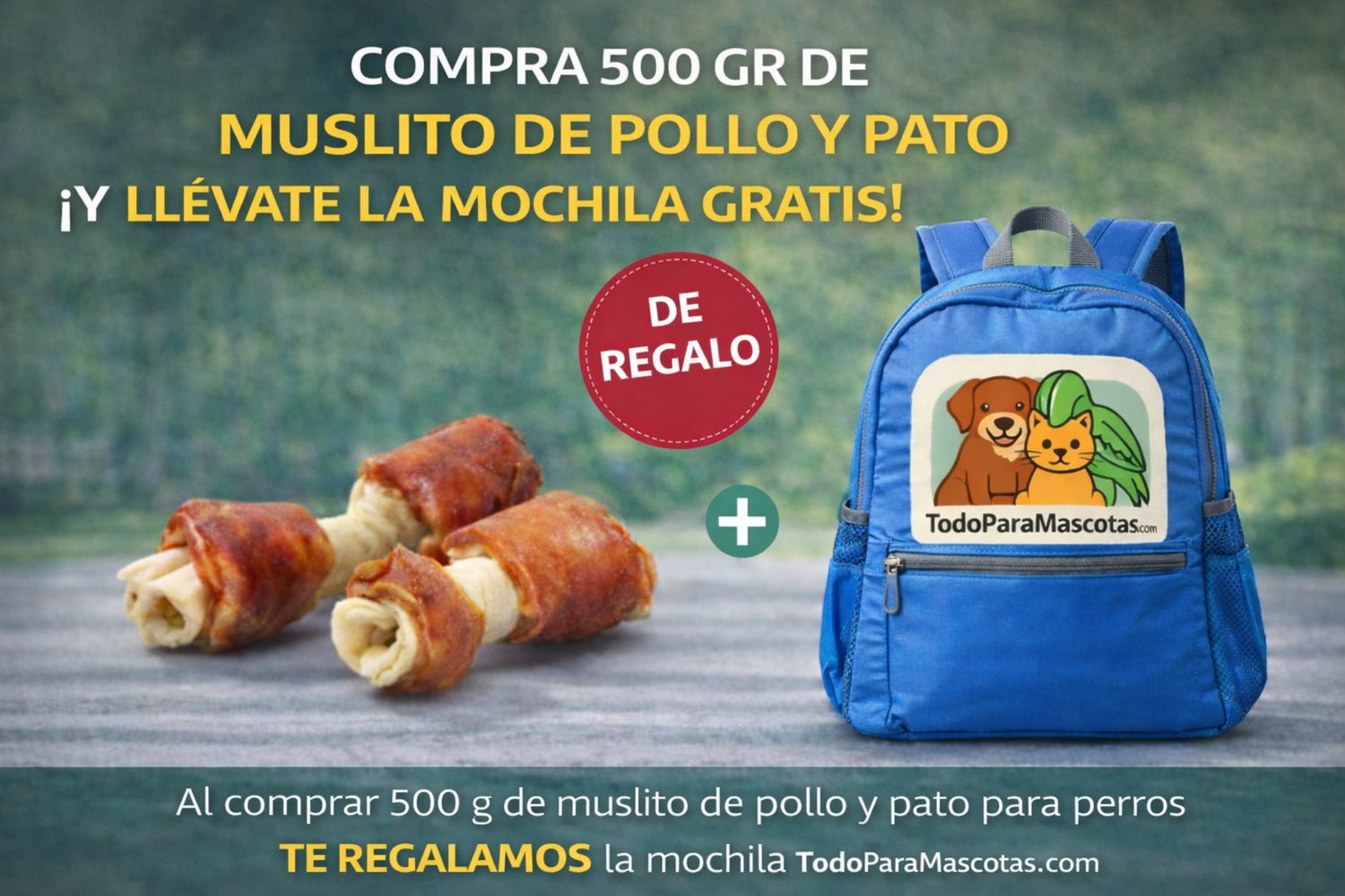 Los Muslitos de Pollo y Pato 500 g son un snack premium elaborado con carne natural de pollo y pato, diseñado para ofrecer un sabor irresistible y una masticación prolongada. Su textura firme y su forma de muslito ayudan a mantener los dientes limpios y las encías fuertes, mientras tu perro disfruta de un premio delicioso y saludable.