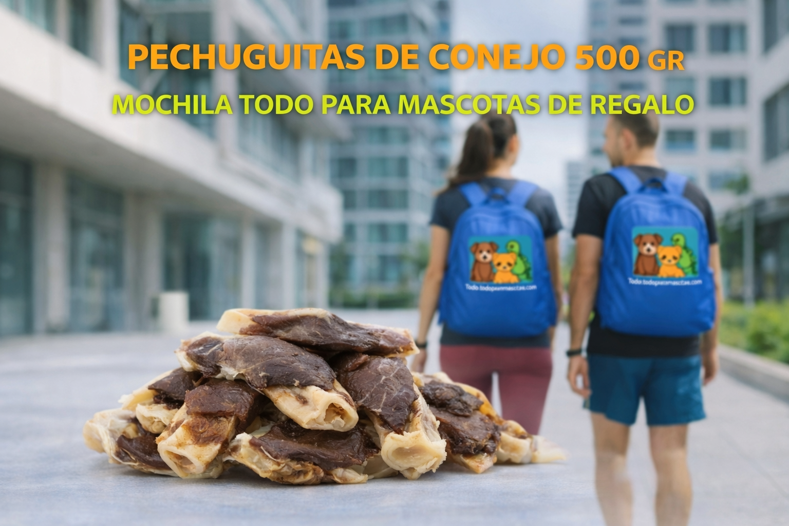 Las Pechuguitas de Conejo 500 g son un snack premium elaborado con carne natural de conejo, cuidadosamente deshidratada para conservar su sabor, aroma y nutrientes. Su textura suave y su alto contenido en proteínas las hacen perfectas para perros de todas las edades, incluso para los de paladar más exigente o con digestiones sensibles.